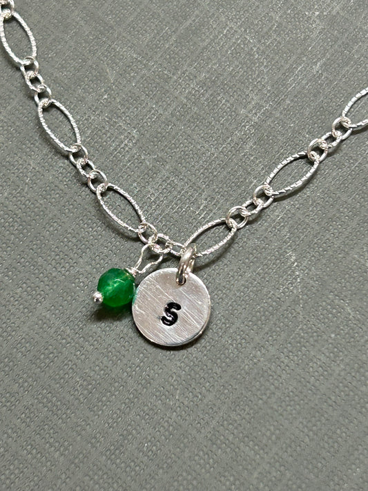 Initial bracelet-sterling silver and Birthstone