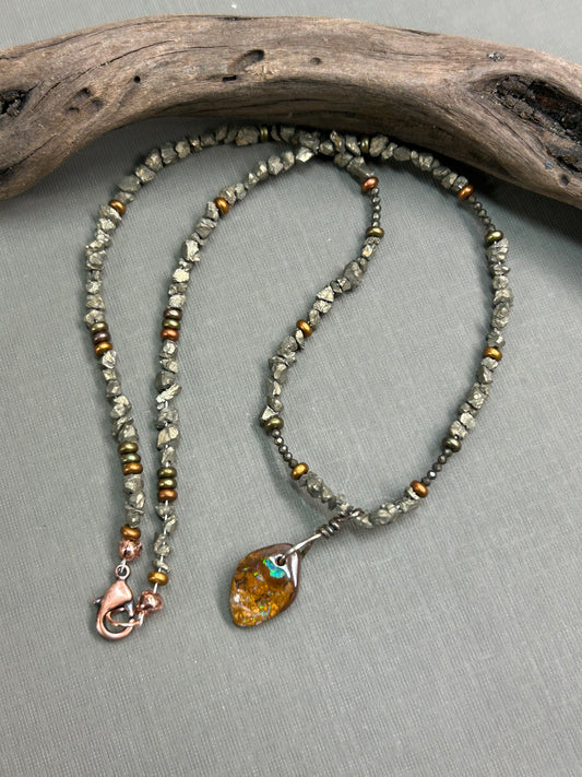 Boulder Opal pyrite necklace