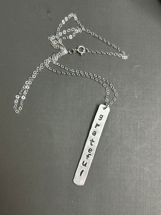 Grateful- stamped silver necklace