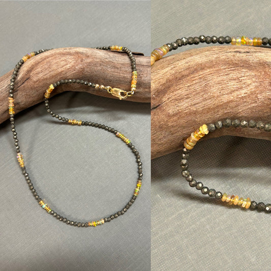 Opal and pyrite dainty necklace