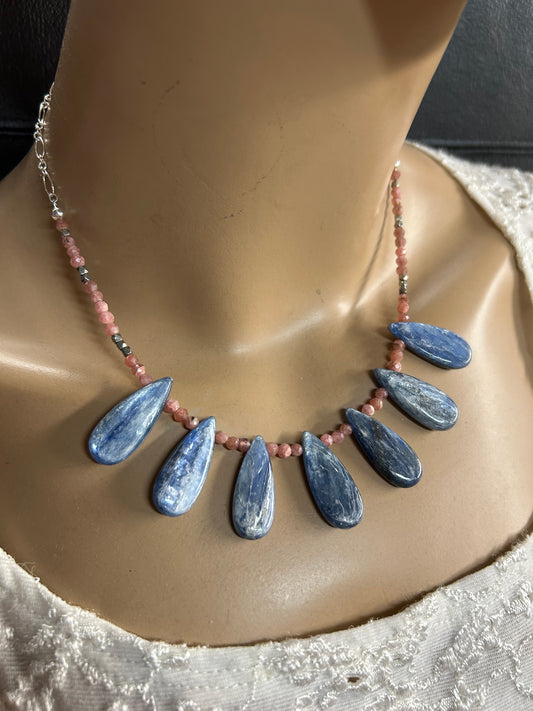 Blue kyanite and Coral necklace