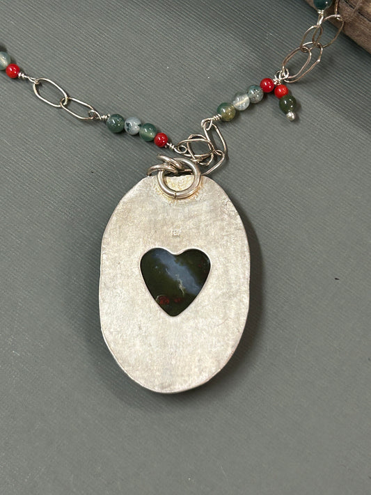 Moss Agate- red flowers field necklace