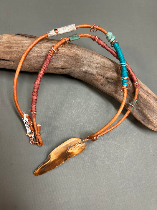 Leather necklace unisex walrus tusk