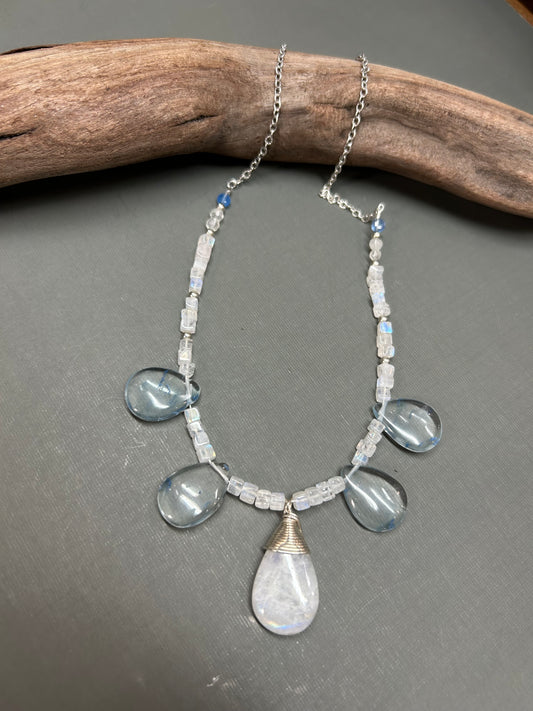 Rainbow moonstone necklace - Blues