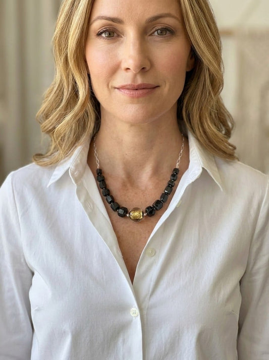 Black Tourmaline and silver necklace