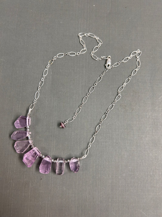Pink Kunzite and silver necklace