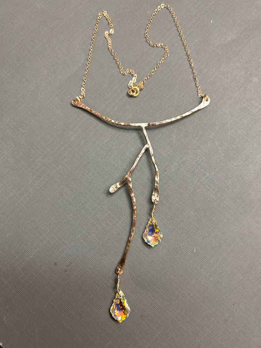 Gold Branches and crystal drops necklace