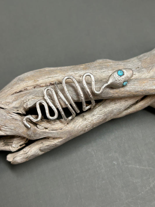 Snake ring wiggly silver snake with turquoise eyes