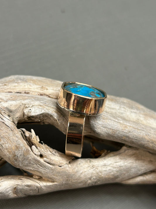 Turquoise ring Bi Metal sterling and gold