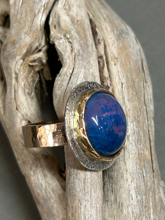Sold outBlue gold and silver ring