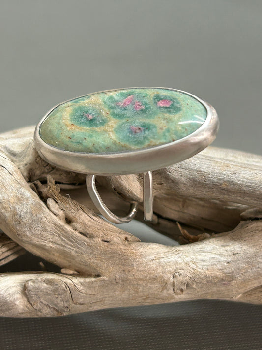 Ruby in zoisite ring- greens and pinks