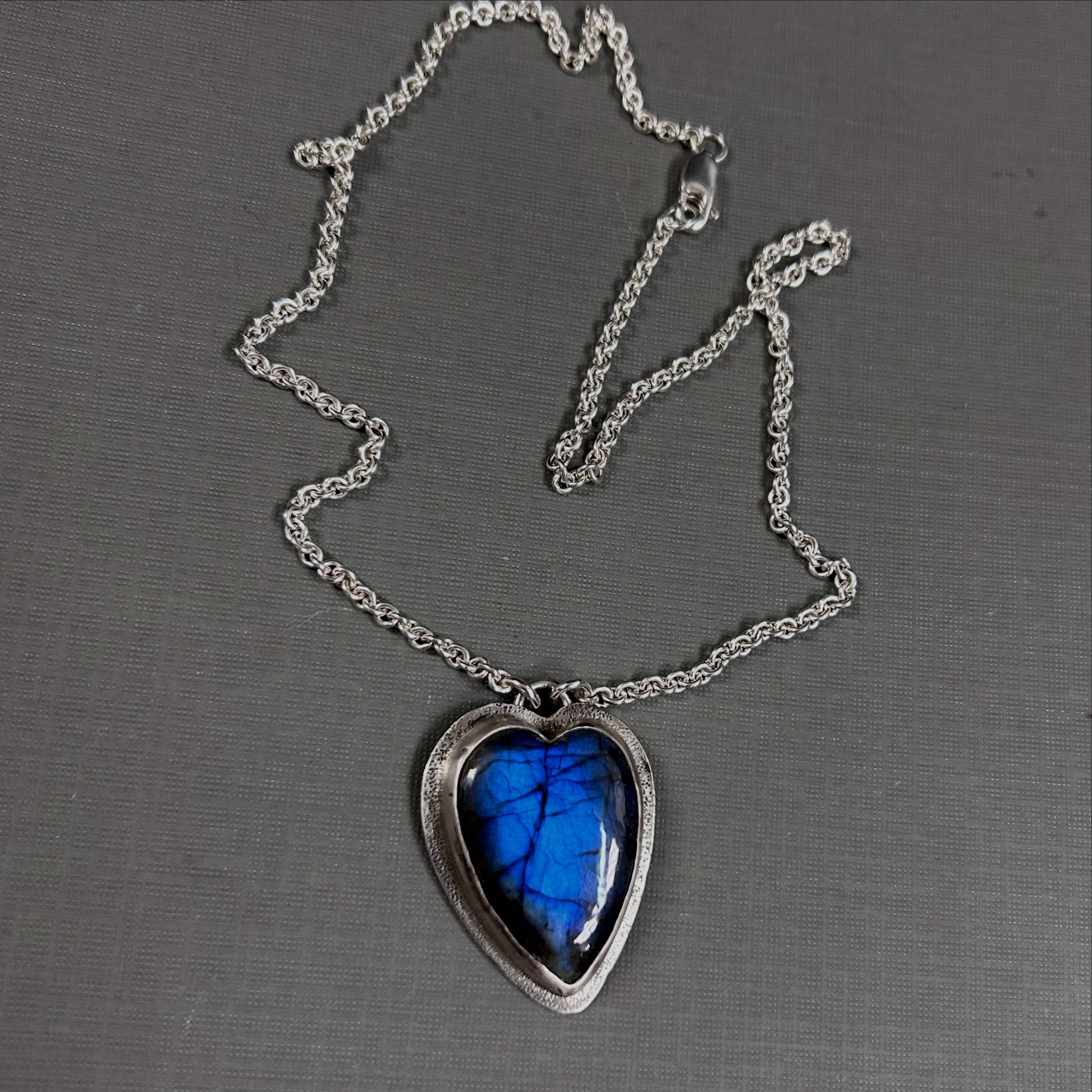 Stunning blue Labradorite heart, set in sterling silver.